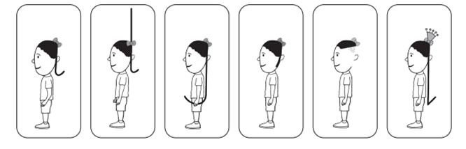 These new handwriting ‘picture hooks’ focus on each group’s shared similarities. For example, here’s the first group of letters – a d g o c q. You can see that the shape of all six sisters’ heads is identical – except for their hair.