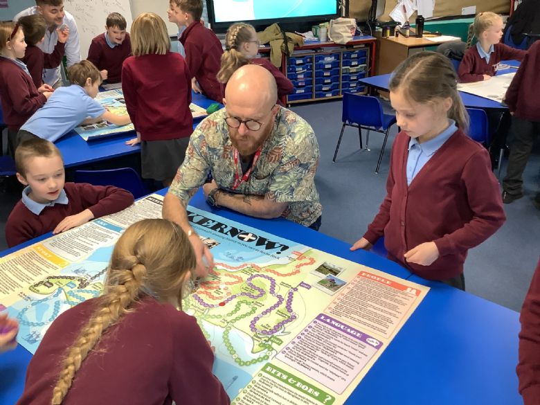 Year 3 had a workshop led by the brilliant Ed Rowe. They enjoyed working together to complete a board game, learning lots of Cornish facts and Cornish language along the way.
