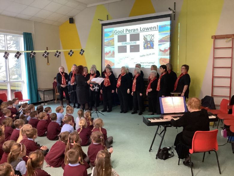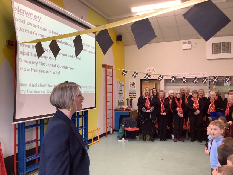 What a 'splann' and 'bryntin' afternoon we had with the Millpool Chorale entertaining us as part of our St Piran's afternoon celebrations. Their singing was beautiful and we are very grateful for them giving up their time to come and sing to us. All our children were an excellent audience with lots of clapping, smiles and singing throughout. Thank you to around 50 parents/carers who came to join us for the Trelawney Shout at 3pm! Our singing certainly raised the roof and sounded stunning altogether.