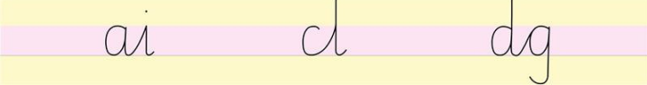 These new handwriting ‘picture hooks’ focus on each group’s shared similarities. For example, here’s the first group of letters – a d g o c q. You can see that the shape of all six sisters’ heads is identical – except for their hair.